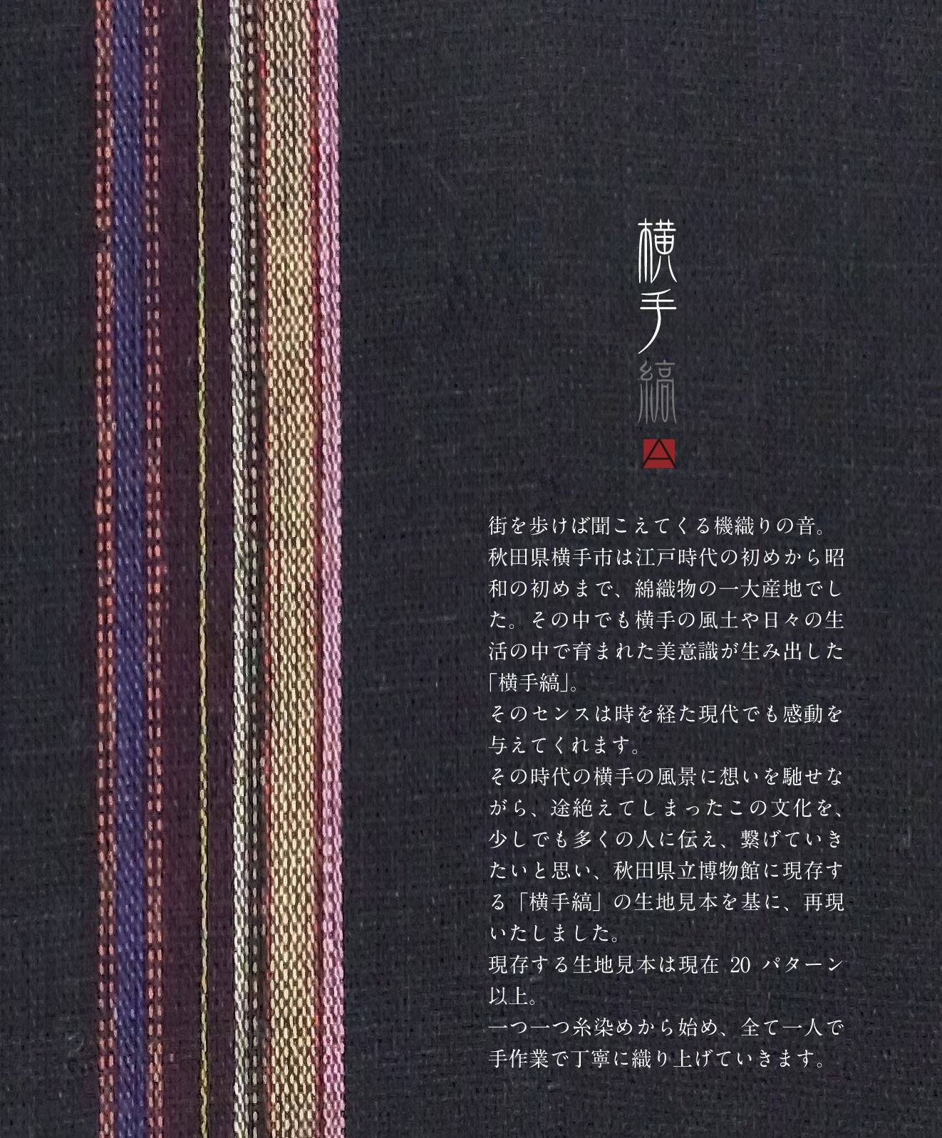 江戸時代初期~昭和初期まで、秋田県横手市で盛んに作られていた、木綿織物の横手縞(よこてじま)。